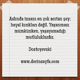 Aslında insanı en çok acıtan şey; hayal kırıkları değil. Yaşanması mümkünken, yaşayamadığı mutluluklardır. Dostoyevski