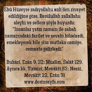 “İnsanlar yatsı namazı ile sabah namazındaki fazilet ve sevabı bilselerdi, emekleyerek bile olsa mutlaka camiye, cemaate gelirlerdi.”