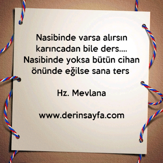 Nasibin de varsa alırsın karıncadan bile ders. Nasibin de yoksa bütün cihan önüne serilse sana ters..(Mevlana)