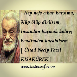 ” Hep nefs çıkar karşıma, ölüp ölüp dirilsem; İnsandan kaçmak kolay; kendimden kaçabilsem… ” [ Üstad Necip Fazıl KISAKÜREK ]