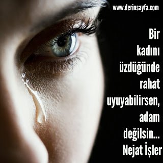 Erkeğim diye övünüyorsun ya, eğer seni seven bir kadını ağlatırsan, dünya ahiret bacımsın.. Nejat İşler