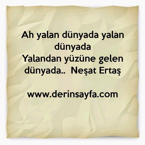 Ah yalan dünyada yalan dünyada Yalandan yüzüne gelen dünyada.. Neşet Ertaş