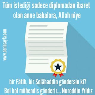 Tüm istediği sadece diplomadan ibaret olan anne babalara, Allah niye bir Fatih, bir Selahaddin göndersin ki? Bol bol mühendis gönderir…