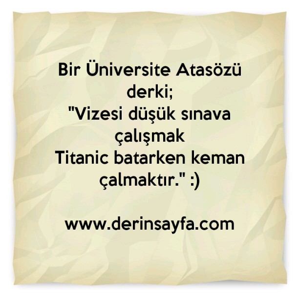 Bir Üniversite Atasözü derki; "Vizesi düşük sınava çalışmak Titanic batarken keman çalmaktır." :)