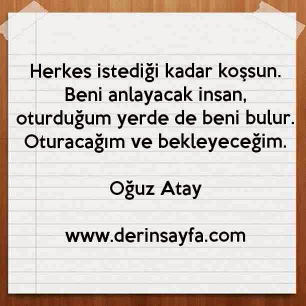 Herkes istediği kadar koşsun. Beni anlayacak insan, oturduğum yerde de beni bulur. Oturacağım ve bekleyeceğim. Oğuz Atay