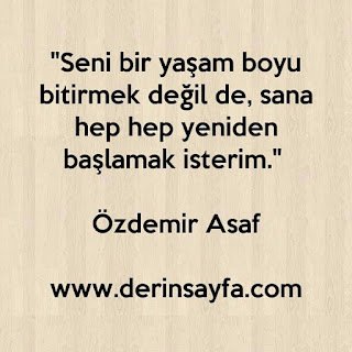 “Seni bir yaşam boyu bitirmek değil de, sana hep hep yeniden başlamak isterim.” – Özdemir Asaf