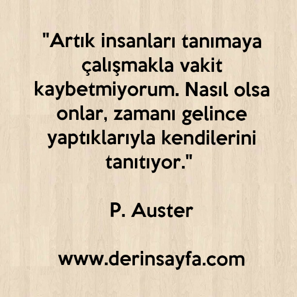 “Artık insanları tanımaya çalışmakla vakit kaybetmiyorum. Nasıl olsa onlar, zamanı gelince yaptıklarıyla kendilerini tanıtıyor.” P. Auster