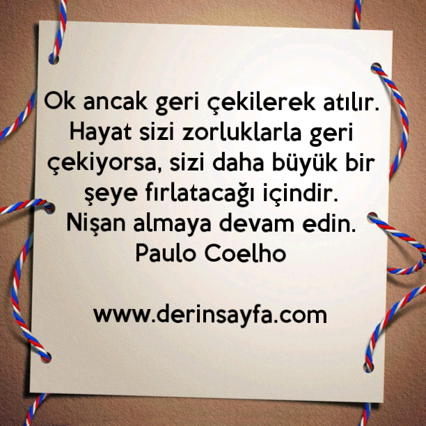 Ok ancak geri çekilerek atılır. Hayat sizi zorluklarla geri çekiyorsa, sizi daha büyük bir şeye fırlatacağı içindir. Nişan almaya devam