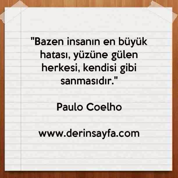 “Bazen insanın en büyük hatası, yüzüne gülen herkesi, kendisi gibi sanmasıdır.” – Paulo Coelho