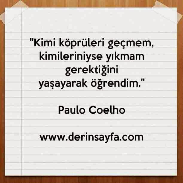 “Kimi köprüleri geçmem, kimileriniyse yıkmam gerektiğini yaşayarak öğrendim.” Paulo Coelho