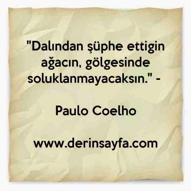 “Dalından şüphe ettigin ağacın, gölgesinde soluklanmayacaksın.” – Paulo Coelho