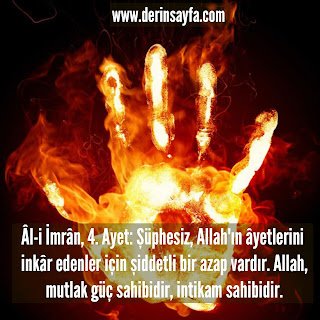Âl-i İmrân, 4. Ayet: Şüphesiz, Allah’ın âyetlerini inkâr edenler için şiddetli bir azap vardır. Allah, mutlak güç sahibidir, intikam sahibidir.