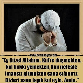 “Ey Güzel Allahım.. Küfre düşmekten, kul hakkı yemekten, Son nefeste imansız gitmekten sana sığınırız. Bizleri sana layık kul eyle. Amin.”