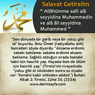 Sen dünyada bir garib veya bir yolcu gibi ol. Hz. Muhammed (S.A.V) (Tirmizi)