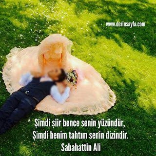 Şimdi şiir bence senin yüzündür, Şimdi benim tahtım senin dizindir. Sabahattin Ali