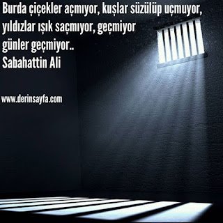 Burda çiçekler açmıyor, kuşlar süzülüp uçmuyor, yıldızlar ışık saçmıyor, geçmiyor günler geçmiyor.. Sabahattin Ali