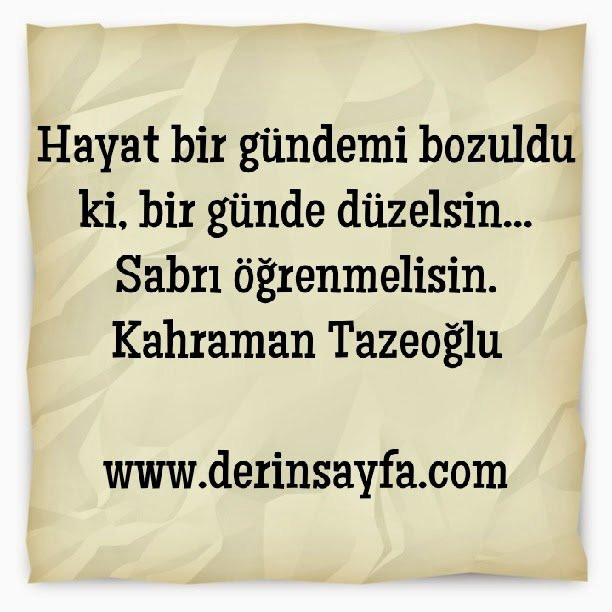 Hayat bir gündemi bozuldu ki, bir günde düzelsin… Sabrı öğrenmelisin. Kahraman Tazeoğlu