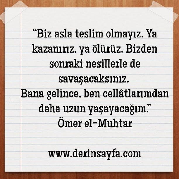 “Biz asla teslim olmayız. Ya kazanırız, ya ölürüz. Bizden sonraki nesillerle de savaşacaksınız. Bana gelince, ben cellâtlarımdan daha uzun yaşayacağım.”