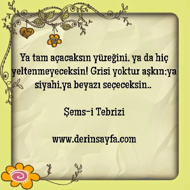 Anladım ki insanlar: Susanı korkak. Görmezden geleni aptal. Affetmeyi bileni çantada keklik.. Şems-i Tebrizi