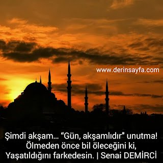 Şimdi akşam… “Gün, akşamlıdır” unutma! Ölmeden önce bil öleceğini ki, Yaşatıldığını farkedesin. | Senai DEMİRCİ |