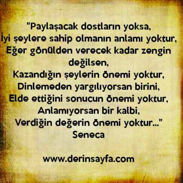 “Paylaşacak dostların yoksa, İyi şeylere sahip olmanın anlamı yoktur..” – Seneca
