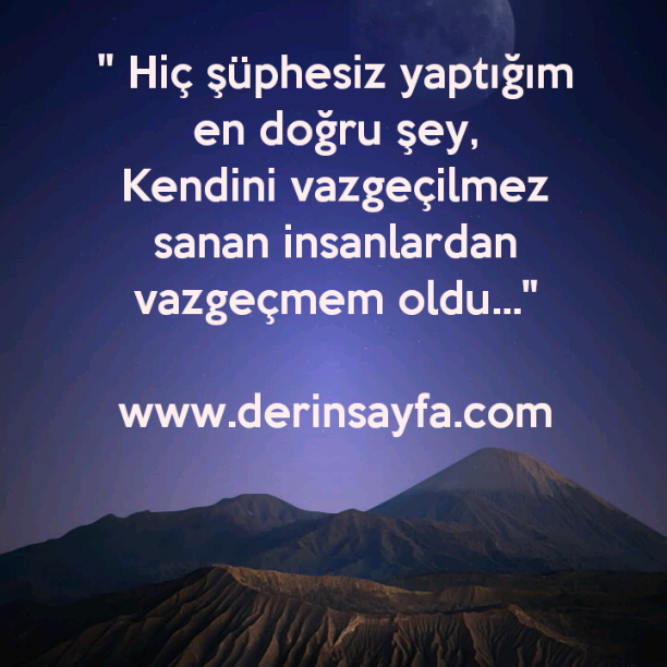 ” Hiç şüphesiz yaptığım en doğru şey, Kendini vazgeçilmez sanan insanlardan vazgeçmem oldu…”