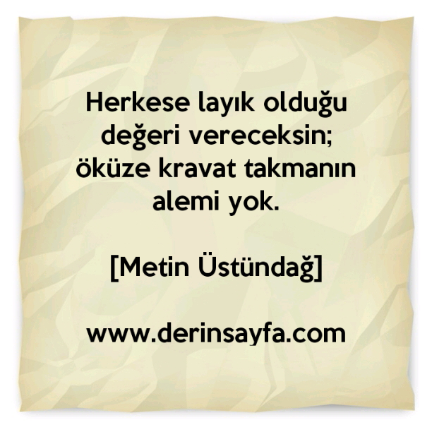 Herkese layık olduğu değeri vereceksin; öküze kravat takmanın alemi yok. – Metin Üstündağ