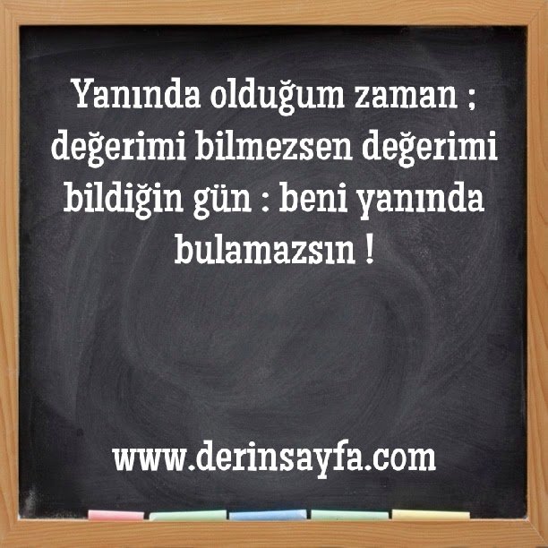 Yanında olduğum zaman ; değerimi bilmezsen değerimi bildiğin gün : beni yanında bulamazsın !