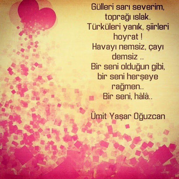 Gülleri sarı severim, toprağı ıslak. Türküleri yanık, şiirleri hoyrat ! Ümit Yaşar Oğuzcan
