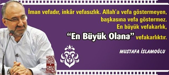 İman vefadır, inkâr vefasızlık. Allah’a vefa göstermeyen, başkasına vefa göstermez. En büyük vefakarlık, “En Büyük Olana” vefakarlıktır. Mustafa İslamoğlu