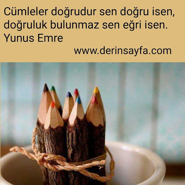 Cümleler doğrudur sen doğru isen, doğruluk bulunmaz sen eğri isen. Yunus Emre