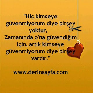 “Hiç kimseye güvenmiyorum diye birşey yoktur, Zamanında o’na güvendiğim için, artık kimseye güvenmiyorum diye birşey vardır.”