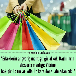 “Erkeklerin alışveriş mantığı: Gir-al-çık. Kadınların alışveriş mantığı: Vitrine bak, gir-üç tur at, elle, Üç kere dene, almadan çık..”