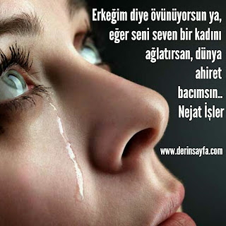 Erkeğim diye övünüyorsun ya, eğer seni seven bir kadını ağlatırsan, dünya ahiret bacımsın.. Nejat İşler