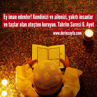 Ey iman edenler! Kendinizi ve ailenizi, yakıtı insanlar ve taşlar olan ateşten koruyun. Tahrîm Suresi 6. Ayet
