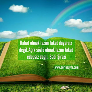 Rahat olmak lazım fakat duyarsız değil. Açık sözlü olmak lazım fakat edepsiz değil. /Sadi Şirazi